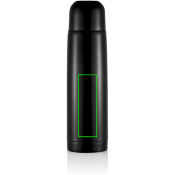 Capacità 500ml, è in acciaio inossidabile, isolato a vuoto, rifinitura lucida e chiusura in plastica nero/grigio.
