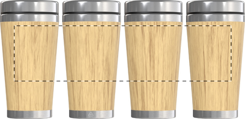 Bicchiere termico da 500ml. in acciaio riciclato a doppia parete, con rivestimento in bambù e tappo erogatore in PP.