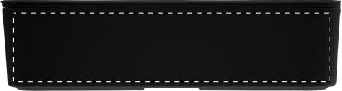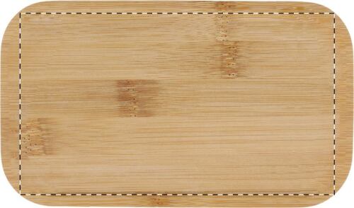 Scatola per il pranzo in plastica PP con set di posate (forchetta, cucchiaio e coltello), coperchio in bambù e cinturino elastico. Con 2 scomparti di 700 ml di capacità ciascuno.