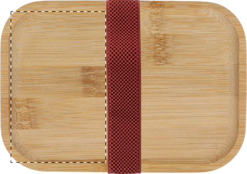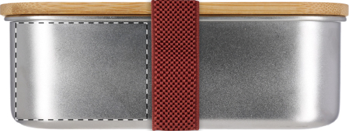 Contenitore per il pranzo in acciaio inox con coperchio e set di posate (coltello e forchetta) in bambù naturale ed elastico di chiusura, 600 ml.