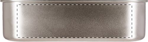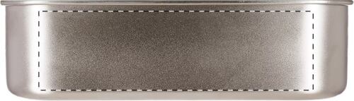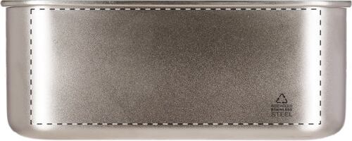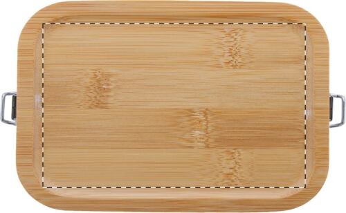 Contenitore per il pranzo in acciaio inox riciclato con 2 scomparti da 340 e 600 ml di capacità, coperchio in bambù e sicura chiusura a gancio.