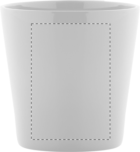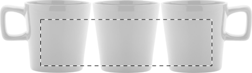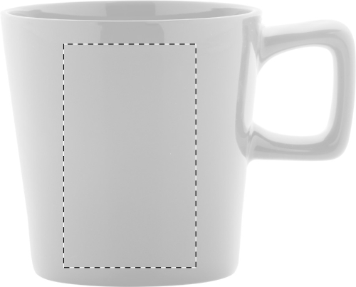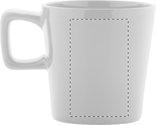 Tazza mug da 280ml. in ceramica di alta qualità con manico rettangolare. Confezione in cartoncino kraft.