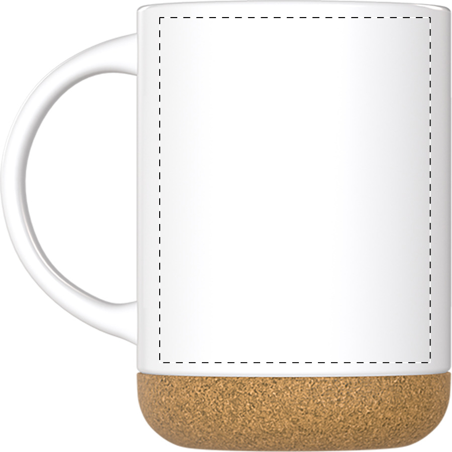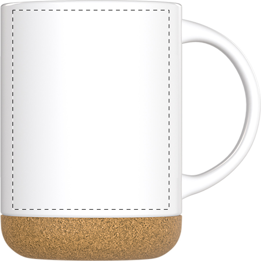Tazza in ceramica di alta qualità da 280ml. con base in sughero naturale, finitura esterna opaca ed interna lucida. Confezionata in scatola di cartoncino kraft.