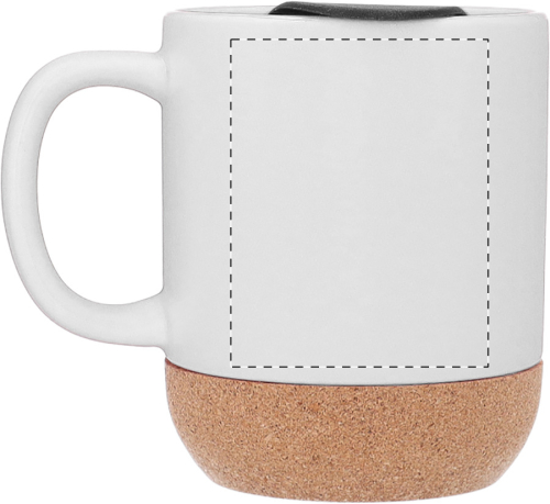 Tazza mug da 325ml. in ceramica di alta qualità con base in sughero naturale e coperchio in plastica PP. Con finitura esterna opaca ed interna lucida. Confezione in cartoncino kraft.