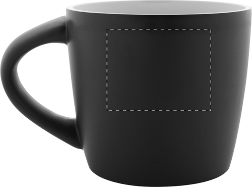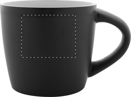 Tazza in ceramica di alta qualità da 300ml. con finitura esterna nera opaca e interna colorata lucida. Confezionata in scatola di cartoncino kraft.