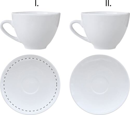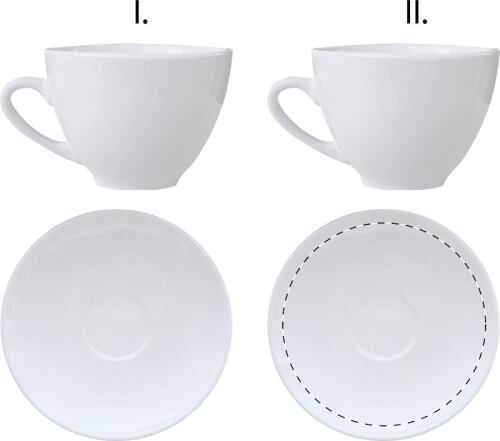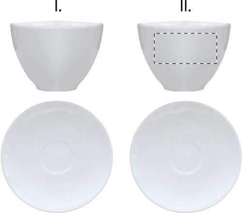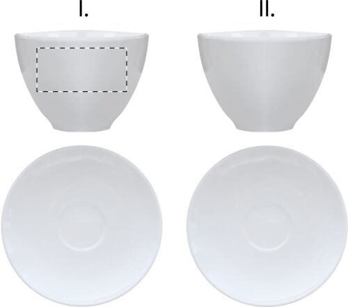 Set 2pz tazzine da caffè e piattini in ceramica, 90 ml. Consegnata in scatola di carta bianca.