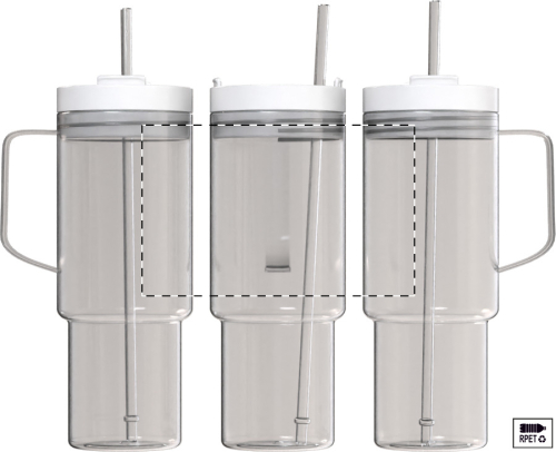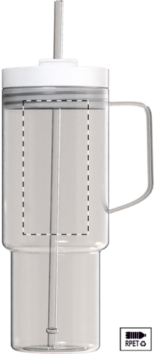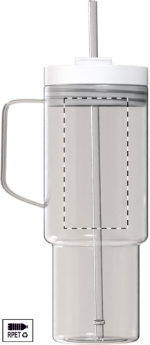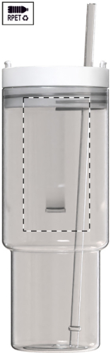 Tazza mono parete in RPET da 1200ml. con coperchio e cannuccia in PP in colore coordinato.