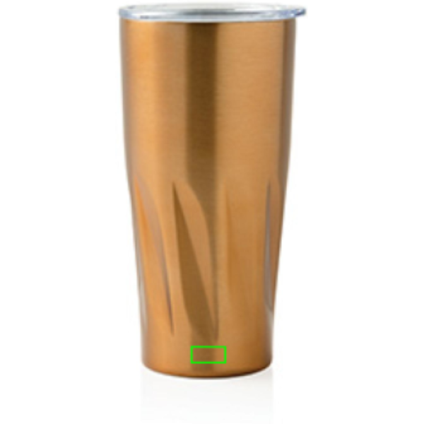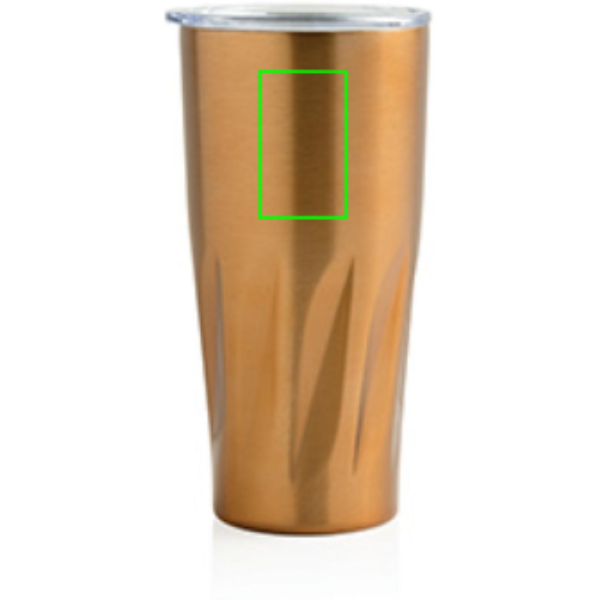 Tazza in acciaio inossidabile 304 ha una struttura a doppia parete isolata a vuoto rivestita in rame il che permette di mantenere le tue bevande calde per 8 ore o fresche per 24 ore. La sua struttura previene la formazione di condensa all’esterno della tazza. Facile da utilizzare grazie al tappo con apertura scorrevole. Capacità 500 ml. Antigoccia. Non va in lavastoviglie. In confezione regalo XD Collection.