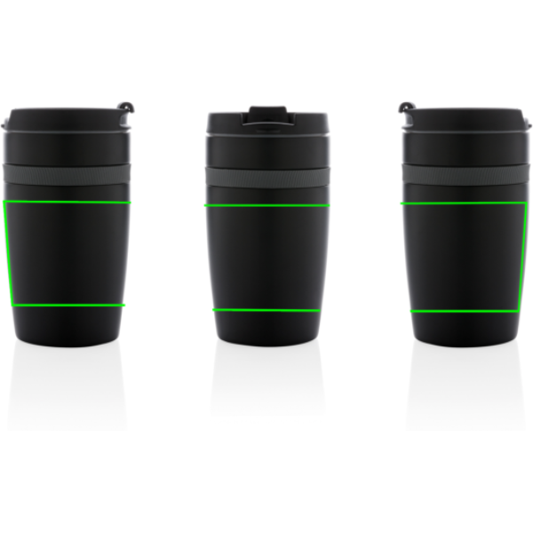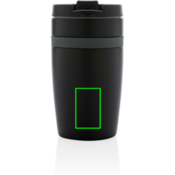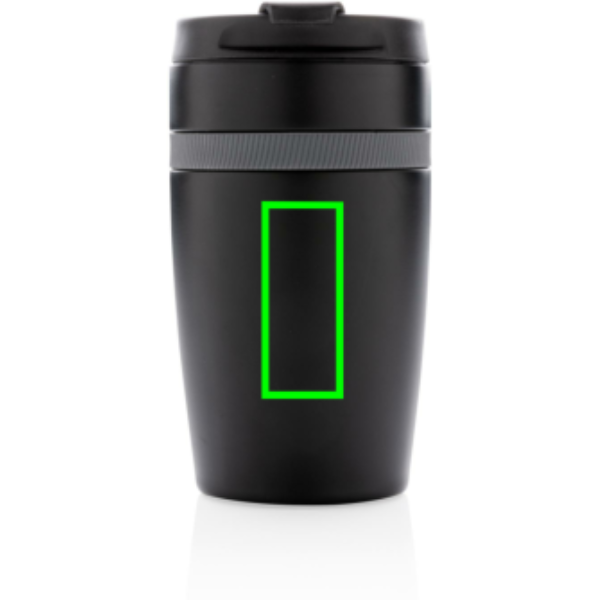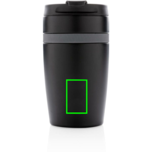 Proprio la giusta dimensione. E' adatta alla maggior parte delle macchine da caffè. Questa tazza in acciaio inossidabile a doppia parete isolata a vuoto ha una banda in silicone sul corpo per evitare di scottarti. Mantiene calde le tue bevande fino a 5 ore o fredde fino a 15 ore. Capacità 280 ml. Design registrato®