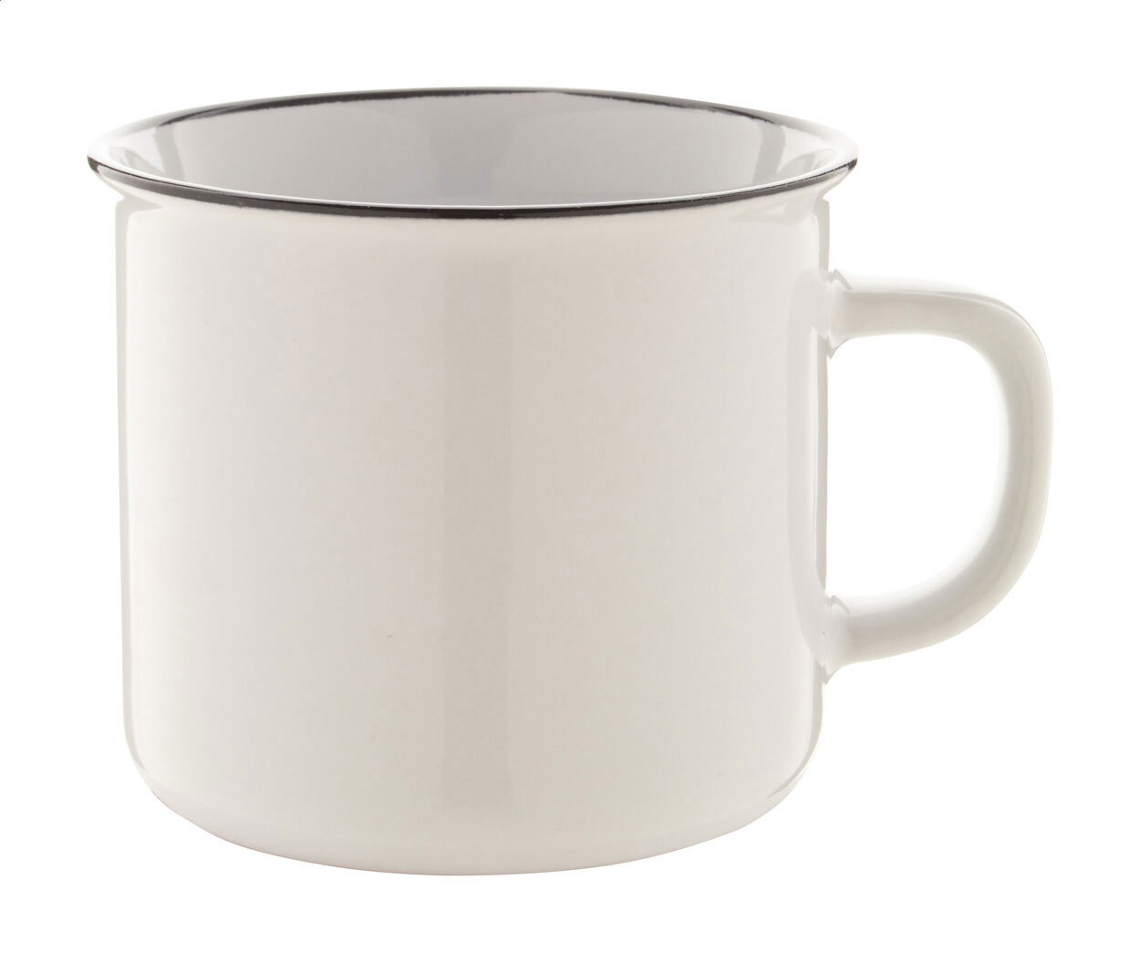 Tazza vintage in ceramica con bordo nero, interno bianco ed esterno colorato, 300 ml. In confezione singola.