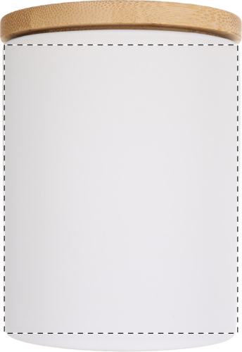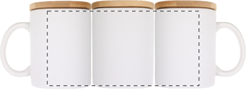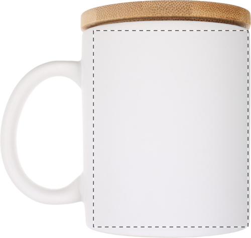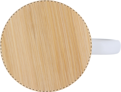 Tazza in ceramica da 370 ml. con finitura opaca e coperchio in bambù. Fornita in confezione di cartoncino kraft.