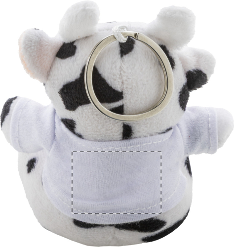 Portachiavi con mucca in peluche e maglietta stampabile.