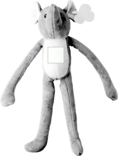 Peluche elefante, braccia lunghe con chiusura in velcro, occhi ricamati, include etichetta per la personalizzazione