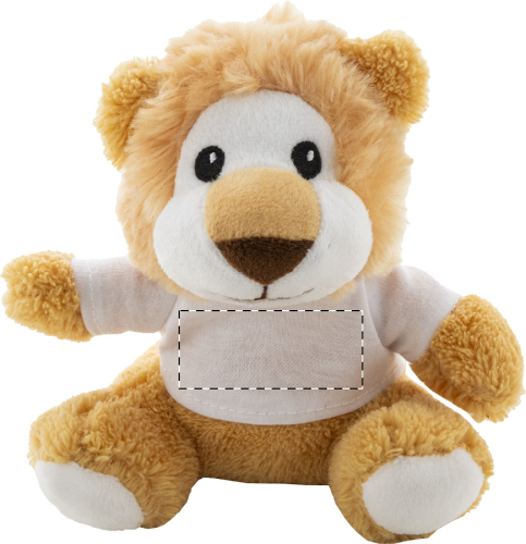 Leone in peluche RPET con maglietta stampabile in poliestere RPET.