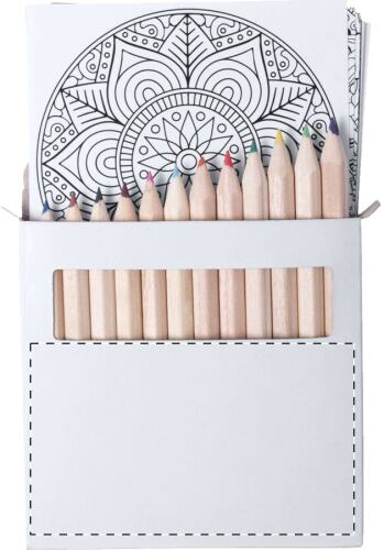 Set con 12 matite colorate e 12 fogli con disegni Mandala.