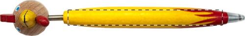 Penna a sfera in legno colorata con figura animale e refill blu.