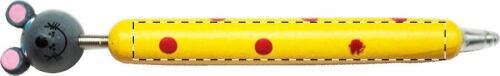 Penna a sfera in legno colorata con figura animale e refill blu.
