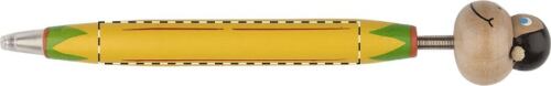 Penna a sfera in legno colorata con figura animale e refill blu.