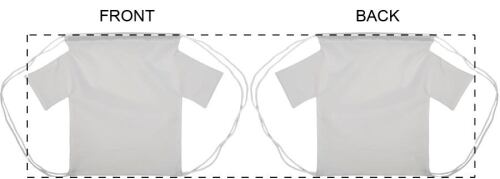 Sacca per bambini in poliestere 190T a forma di maglietta personalizzabile, con chiusura coulisse e cordoncini colorati. Con grafica stampata in sublimazione su tutta la superficie. MOQ: 25 pezzi.