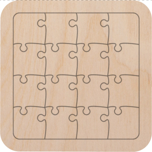 Puzzle in compensato di betulla da 16 pezzi, personalizzabile con grafica a colori. Il costo comprende la stampa a UV LED. MOQ: 50 pezzi.