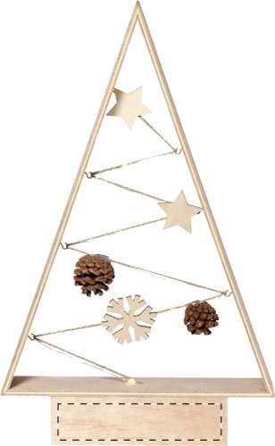Decorazione da tavolo a forma di albero di Natale in legno con 8 LED. Funziona con 2 batterie AAA, non fornite.