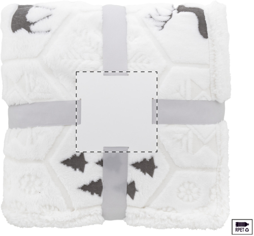 Elegante coperta natalizia a doppio strato in pile di flanella RPET da 270 g/m² e fodera reversibile in pile sherpa RPET da 210 g/m², e motivo a rilievo a tema invernale. Confezionata con nastro e cartoncino stampabile.