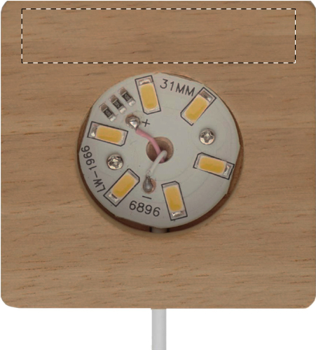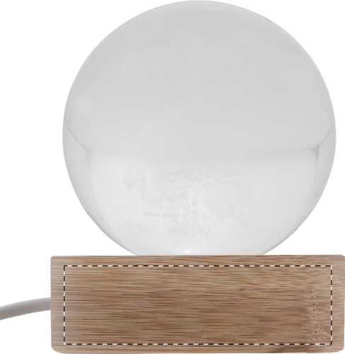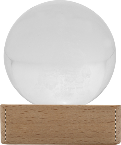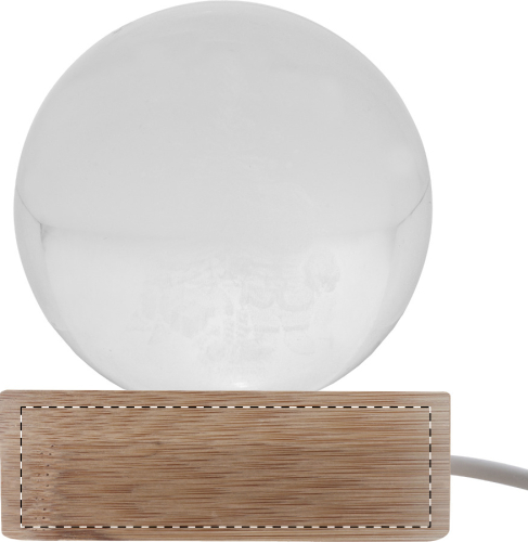 Decorazione natalizia in vetro con base in legno dotata di luce LED. Cavo di ricarica USB incluso.