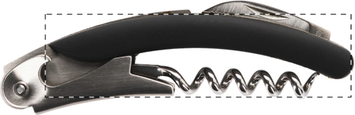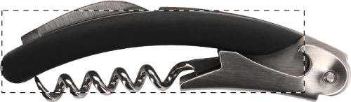 Set vino con cavatappi e tappo con decorazione albero di Natale sulla parte superiore. In scatola regalo in cartoncino nero.