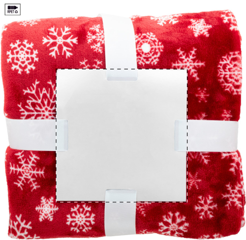 Coperta natalizia in pile di flanella RPET, 260 g/m². Con cartoncino stampabile e nastro.