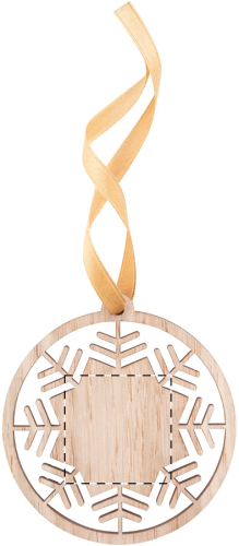 Decorazione Natalizia in multistrato di betulla, completa di nastro dorato. Spedito con nastro separato.