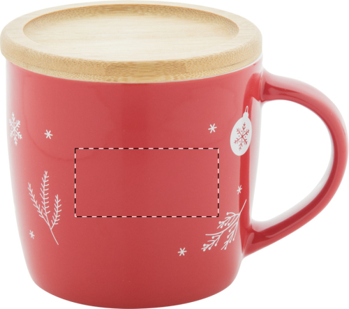 Mug in ceramica di alta qualità da 370 ml con decoro natalizio e sottobicchiere in bambù. In scatola di cartoncino kraft.