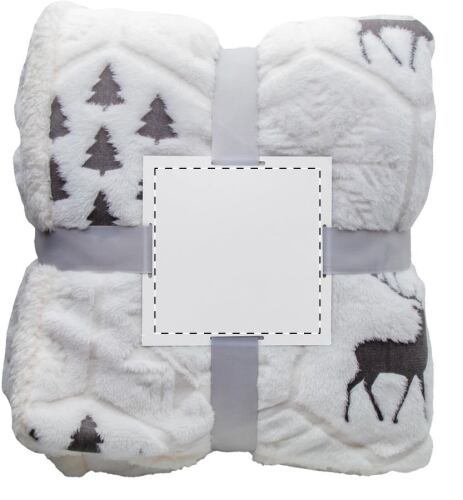 Elegante coperta natalizia in flanella 270 g/m² e fodera reversibile in pile sherpa 210 g/m². Confezione con nastro e cartoncino personalizzabile.