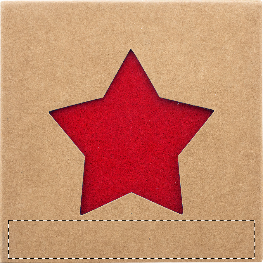 Set di 4 sottobicchieri natalizi in feltro RPET a forma di stella confezionati in scatola di cartoncino kraft.