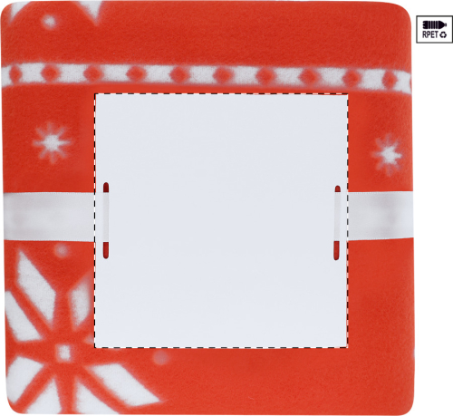 Coperta natalizia in pile di poliestere RPET 200 g/m2 antipilling. Confezionata con nastro e cartoncino stampabile.