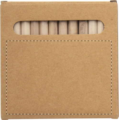 Gioco di memoria natalizio da colorare in sacchetto di cotone. Comprende gioco di memoria in cartoncino (24 tessere) con motivi natalizi e matite colorate in legno (12 pezzi) confezionate in una scatola di cartoncino.