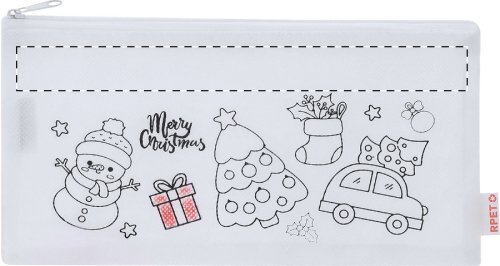 Astuccio con decorazione natalizia da colorare in tessuto non tessuto RPET con cerniera e 5 pastelli.