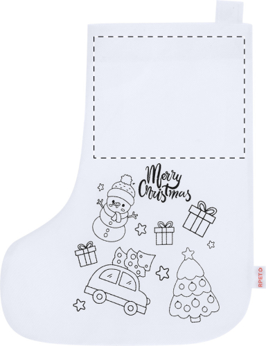 Calza con decorazione natalizia da colorare in tessuto non tessuto RPET e 5 pastelli.