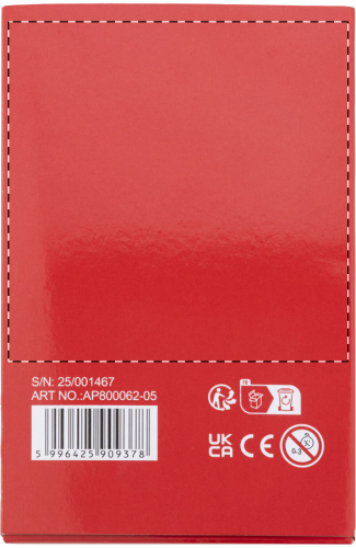 Set natalizio composto da 8 fogli decorativi in cartoncino, 6 pastelli e nastri per appendere. Confezione in scatola di cartoncino rosso.