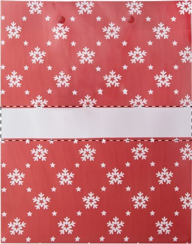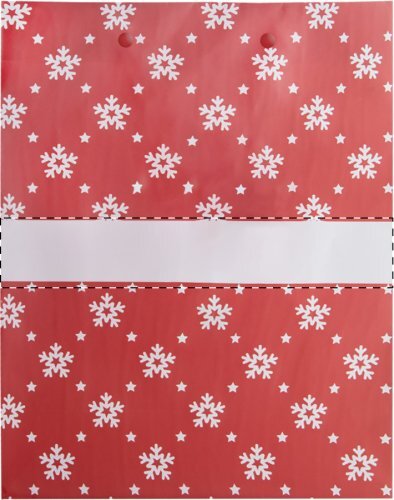 Sacchetto regalo in carta laminata opaca con design Natalizio, area di stampa bianca ed etichetta regalo.