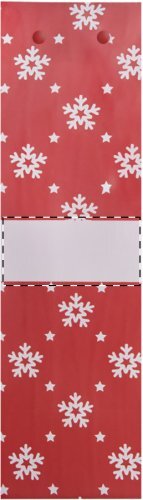 Sacchetto regalo per bottiglia di vino in carta laminata opaca con design Natalizio, area di stampa bianca ed etichetta regalo.