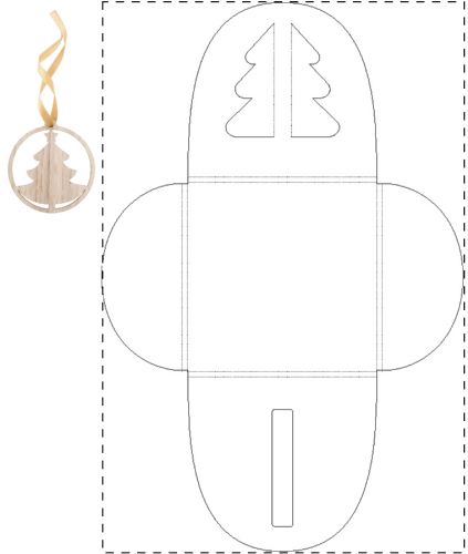 Bustina in carta stampata a colori per il confezionamento degli addobbi natalizi, con fustellatura a forma di albero di Natale. Senza ornamento. MOQ: 50 pezzi.