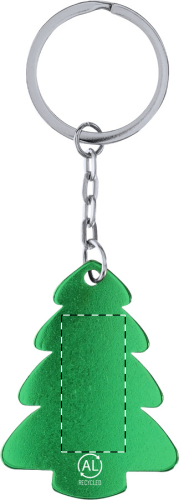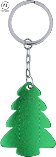 Portachiavi in alluminio riciclato a forma di albero di Natale con anello in metallo.