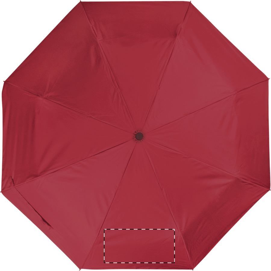Ombrello con apertura manuale invertita ad 8 pannelli, manico "C", struttura in metallo e stecche in fibra di vetro. Materiale: 190T pongee.