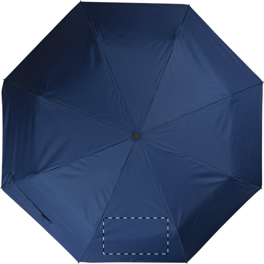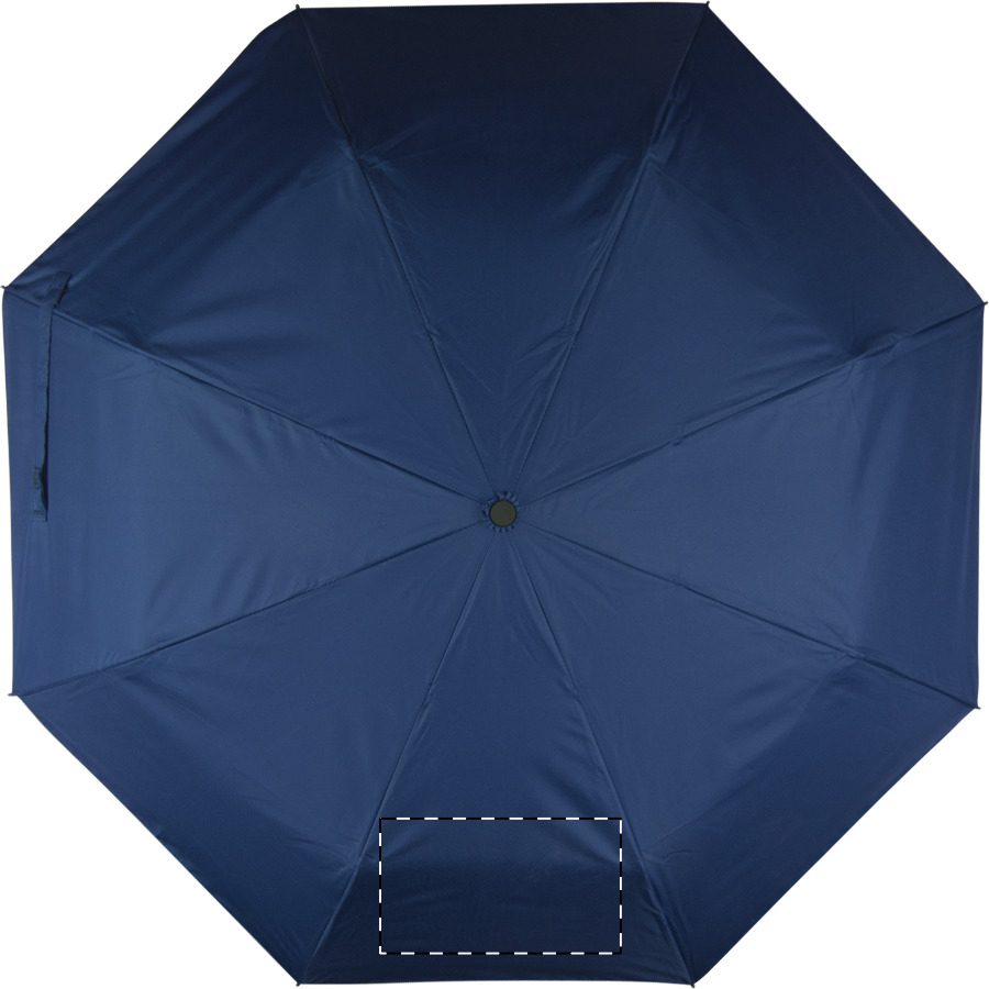 Ombrello automatico pieghevole in Pongee 190T con 8 pannelli, manico ergonomico in EVA, asta e struttura in metallo e fodera in colore coordinato.