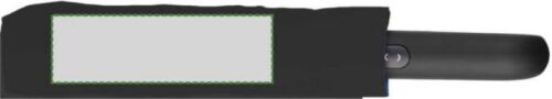 Ombrello pieghevole automatico 'Apri & Chiudi' rPET 190 T (27 pollici), sei pannelli, telaio in acciaio, etichetta rPET sulla chiusura in velcro, manico a moschettone in plastica, include custodia, resistente al vento