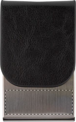 Set portachiavi e portabiglietti da visita copertura in similpelle e metallo spazzolato in confezione regalo.