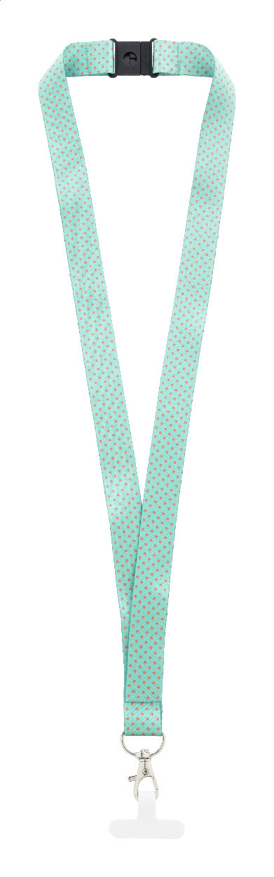 Lanyard in poliestere con moschettone in metallo, cordoncino per cellulare e fibbia di sicurezza. Con grafica in sublimazione stampata su entrambi i lati. Quantità minima: 100 pezzi.