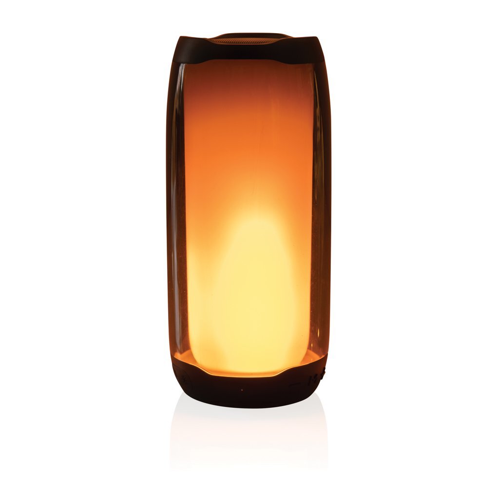 Speaker wireless da 3W realizzato con involucro in bambù 100% FSC® e ABS riciclato certificato RCS (Recycled Claim Standard). Contenuto totale riciclato: 16% in base al peso totale dell'articolo. La certificazione RCS garantisce una filiera completamente certificata dei materiali riciclati. Ha una luce integrata nella parte inferiore ed è dotato di una batteria da 300 mAh per garantire fino a 3 ore di riproduzione e BT4.1 per una connessione fluida e un suono chiaro. Raggio di connessione fino a 10 metri. Include microfono per rispondere alle chiamate. Confezionato in scatola FSC® mix. Compreso di cavo di ricarica in TPE riciclato certificato RCS. Articolo e accessori 100% senza PVC.