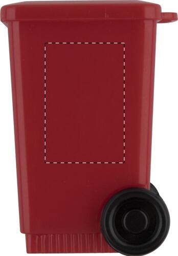 Temperamatite in plastica a forma di bidone.