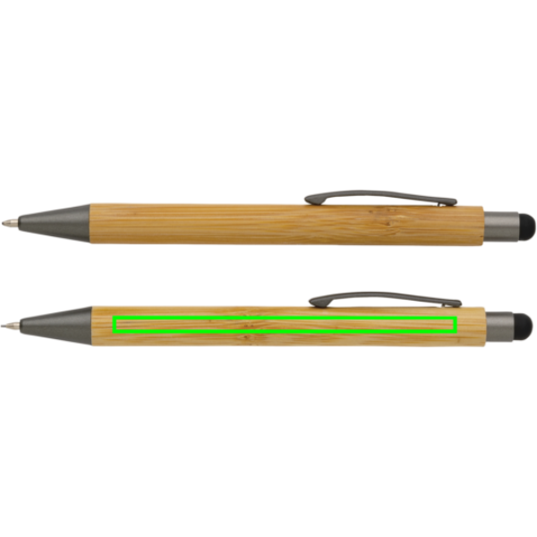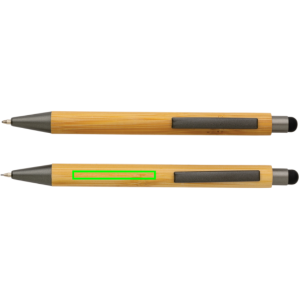 Questo set di penne dall'aspetto moderno composto da penna a sfera e matita è realizzato con bambù certificato FSC®. La penna è dotata di una ricarica di scrittura da 800 m con inchiostro blu tedesco e la matita di una mina da 0,7 mm. Confezionato in scatola regalo certificata FSC®.